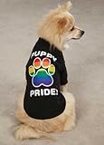 Casual Canine , Support The Movement! Now doggie pals can champion the movement by wearing these unforgettable tees. This black poly/cotton tee supports a screen-printed rainbow paw with a pride message on the back. Easy pullover styling with elasticized neck, arms and hem and high-cut, stay-dry belly for comfy fit. ...